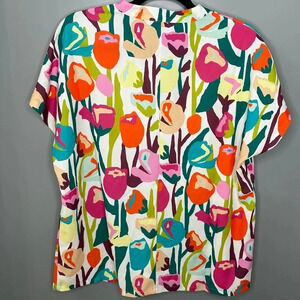 CROSBY by Mollie Burch Billie Blouse Tulip Print Colorful Floral Top Size XS