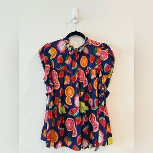 CROSBY by Mollie Burch Colorful Fruit Print Blouse