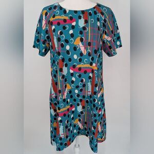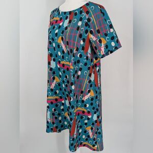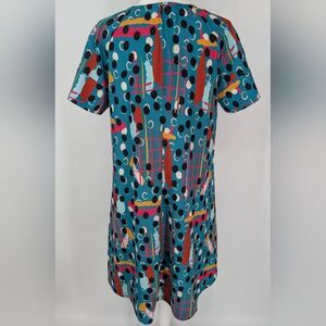 CROSBY by Mollie Burch Teal Pink Black Abstract Polka Dot Artsy Whit Dress Small