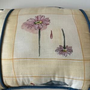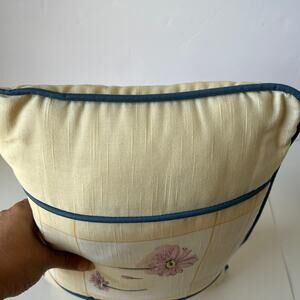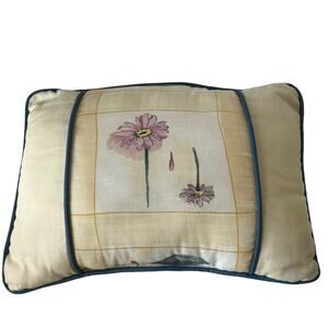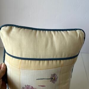 CROSCILL ACCESSORIES Throw Pillow Yellow Floral Cottage Core Blue Cord USA 15x11
