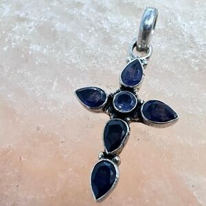 CROSS Amethyst Pendant Sterling Silver Pave Set Deep Purple Tear Drop Round 4030