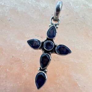 CROSS Amethyst Pendant Sterling Silver Pave Set Deep Purple Tear Drop Round 4030