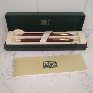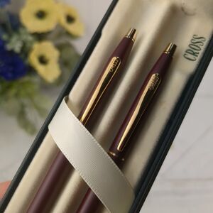 CROSS Century Pen Pencil Set Matte Burgundy Bordeaux & 23K Gold Plated Trim