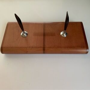 CROSS Double Pen Holder Mechanical Pencil Wood Walnut Desk Base MCM Rare HTF VTG
