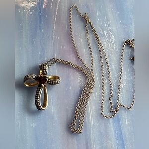 CROSS PENDANT NECKLACE GEMSTONE AND MARCASITE GOLD OVER STERLING PETITE 5509 L