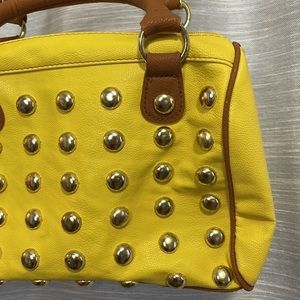 Long, Crossbody strap, removable, two shoulder straps. Zipper enclosure, zipper and pockets inside. Blue spot front upper left-hand side in photos.