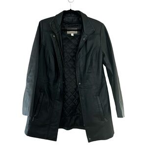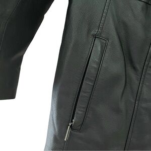 CROWN AND BARROW 100% Genuine Leather Black Trench Blazer Jacket Sz S