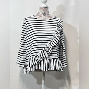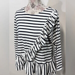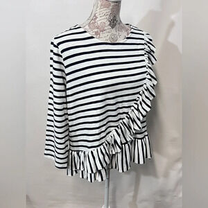 🛍️CROWN & IVY Black and white striped ruffle top size PL.