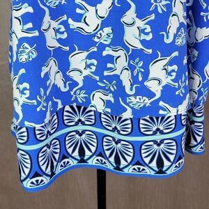 CROWN & IVY Blue and White Layered Elephant Print Blouse Small