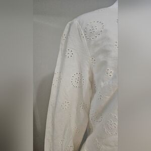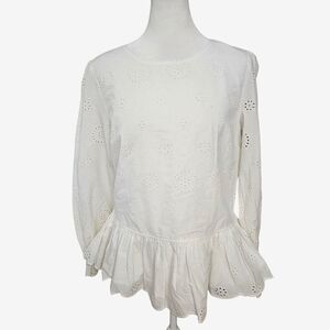 CROWN & IVY Lace Eyelet Ruffled Peplum Blouse In White. Size SP NWT