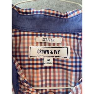 CROWN & IVY Mens Stretch Button Down Plaid Long Sleeve Size Medium