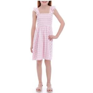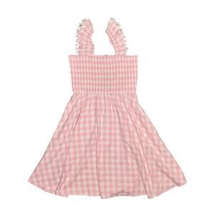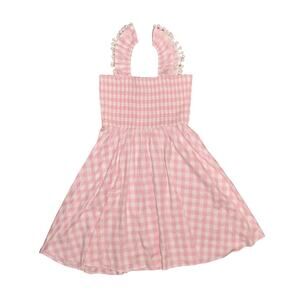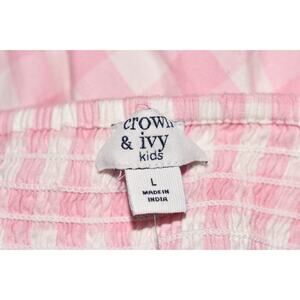 CROWN & IVY NEW $60 Smocked Yarn Dyed Pink Gingham Check Dress Girl's Large
