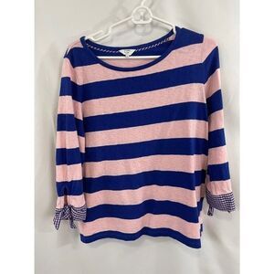 PL Large Women's Shirt Pink and Blue stripes Loose fitting top with gingham plaid tie accent sleeve cuffs
