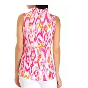 CROWN & IVY Sleeveless Tunic with Ruffled Collar Detail Bright Watercolor Print
