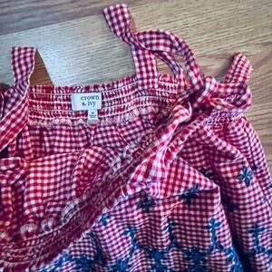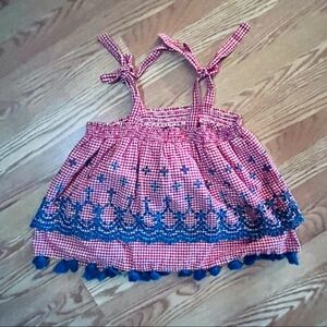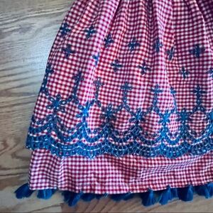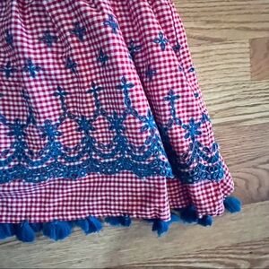 Crown & Ivory Red & White Checkered With Blue Embroidery & Tassels Top Size Small Tie Sleeves