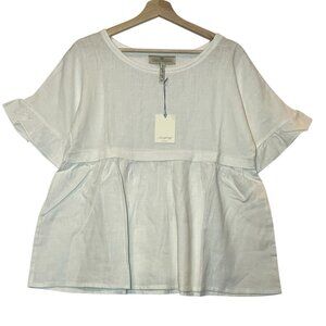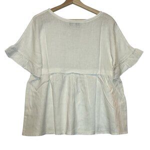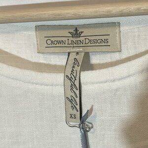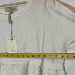 CROWN LINEN DESIGNS 100% Linen Top Size XS White Ruffles Short Bell Sleeves NWT
