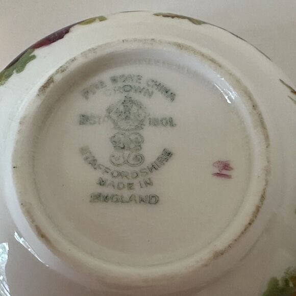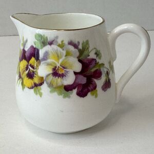 CROWN STAFFORDSHIRE Mini Creamer & Sugar Bowl White, Yellow, Purple Pansies VTG