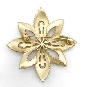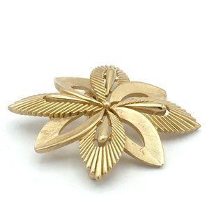 CROWN TRIFARI starburst flower brooch - vintage 1960s brushed gold-plate Mod pin