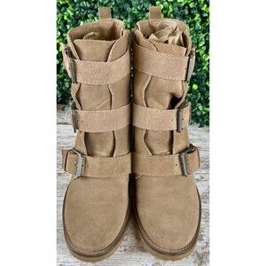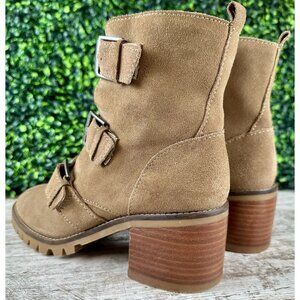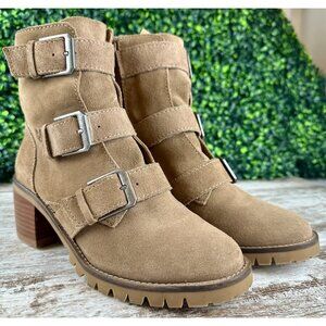 CROWN VINTAGE Asisa Ankle Boot Women’s 6.5 Tan Suede Leather Buckle Moto Chic