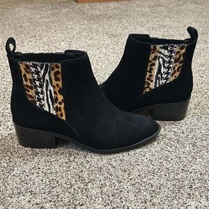 CROWN VINTAGE Tolana black suede animal print ankle booties size 8.5