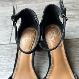 CROWN VINTAGE Valentinaa D'Orsay Black Leather Strappy Pumps