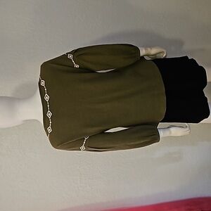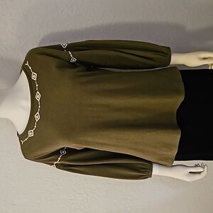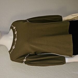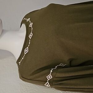 CRUEL DENIM Olive Green Western Aztec Embroidered Waffle Ribbed Blouse