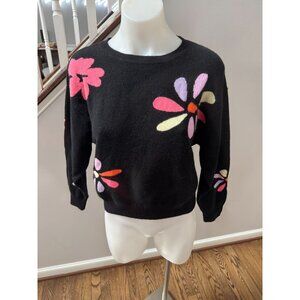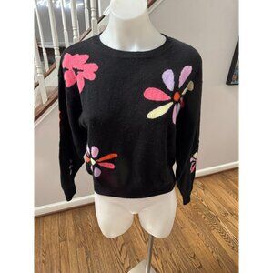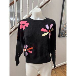 CRUSH CASHMERE Tropical Floral Cashmere Sweater Black Multi Size 0 XS