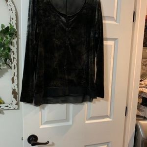 This super soft brownish black shirt is super comfy and has a snap down front. Hemline has sheer fabric for super style!!!! Great with jeans!