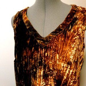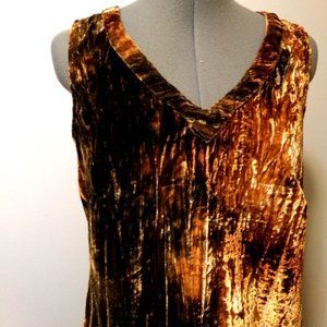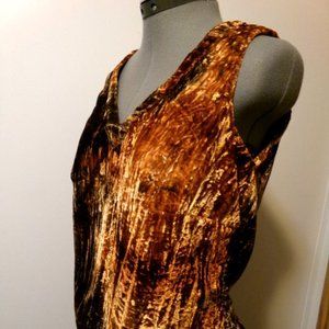 CRUSHED VELVET V-neck Sleeveless Blouse PM Rust Brown Orange Zipper back top