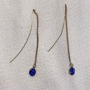 CRYSTAL BLUE DROP STONE Dangling Drop Earrings with Skinny Long Dangling Back