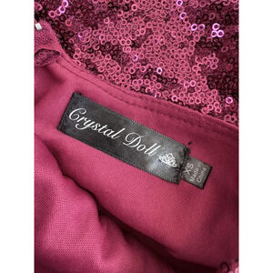 CRYSTAL DOLL Cocktail Mini Dress Size XS Red Pink Sequins Prom Party Formal