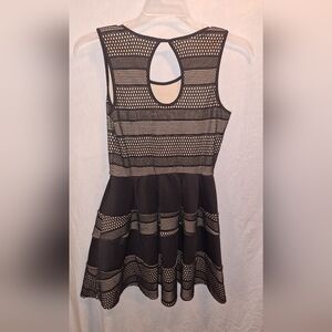 This elegant sleeveless dress features a chic black and cream design, perfect for any occasion. The stylish pattern adds a touch of sophistication to your wardrobe.