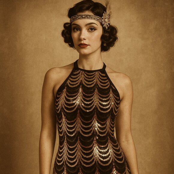 CRYSTAL DOLL SEQUIN HALTER GOWN (Size 7) - “Old Hollywood meets New Year’s Eve”