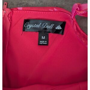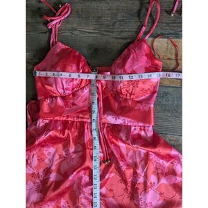 CRYSTAL DOLL Tiered Maxi Gown M Red Pink Floral Satin Fantasy Fairy Formal Dress
