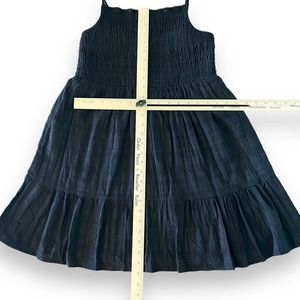 Macy’s Crystal Doll Women’s Black Smocked Ruffled Dress with Adjustable Spaghetti Straps, Square Neck, Short Fit + Flare Dress.