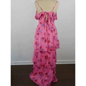 Sweet cold-shoulder pleating drapes, wraps, and ties at the deep V-back of this tiered maxi dress from Crystal Doll. It's an all-around stunner at a wedding or special event.