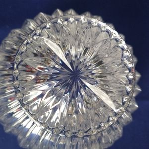 The pedestal bottom feature a classic and delightful open star of wedges daisy petals like all in clear Crystal, not only enhance gorgeousness but, it's a sublime feeling of having a HUGE Shimmering Diamond on your hands