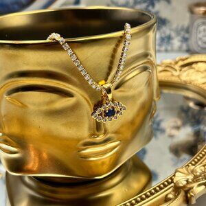 🆕 CRYSTAL HAZE 🧿 BNWT The Evil Eye Pendant - 18K Gold Plated Brass