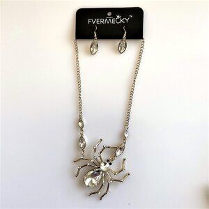CRYSTAL SPIDER GOTH HALLOWEEN HOLIDAY STATEMENT NECKLACE EARRINGS SET 3D