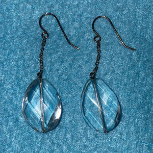 CRYSTAL teardrop facetted dangel pierced earrings clear on silver dainty chains