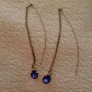 CRYSTAL BLUE DROP STONE Dangling Drop Earrings with Skinny Long Dangling Back