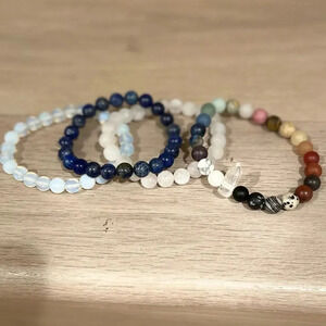 Shoppe Geo's newest bracelet, the Crystalline Healing Bracelet, is comprised of a variety of crystals, specially curated for their healing properties. The card back includes information about healing foundations, energy clearing, and suggested healing affirmations. The bracelet is made of round, genuine crystal beads, combining matte and polished crystals - with 22 matte finished