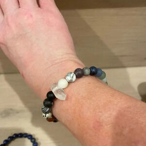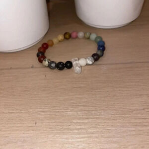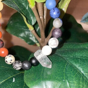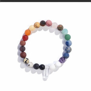 CRYSTALINE HEALING CHAKRA MULTI STONE BEADED BRACELET WITH CLEAR QUARTZ CRYSTAL