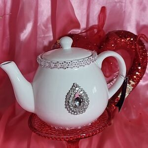 CRYSTALLINE Beautiful White {Glass Teapot} Kitchen Home Decor! 1766