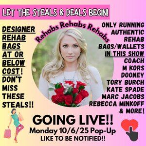 📢MONDAY 10/6/25 - POP-UP TIME! SHOW IS CURRENTLY SET FOR 3PM BUT MAY START SOONER. REHAB DESIGNER BAG & WALLET INVENTORY BLOWOUT AT MY LOWEST PRICES EVERRRR!! BE HERE AT THE START IF YOU DON’T WANT TO MISS OUT!! PLEASE COME SAY HI AND ENJOY SOME FUN, FAST SHOPPING! (ALL SALES FINAL)