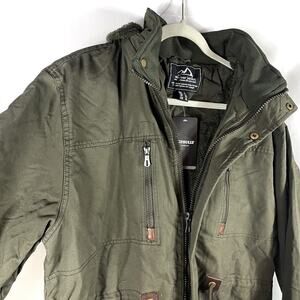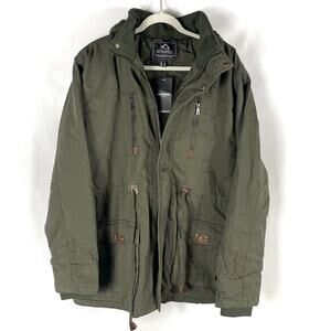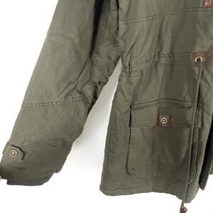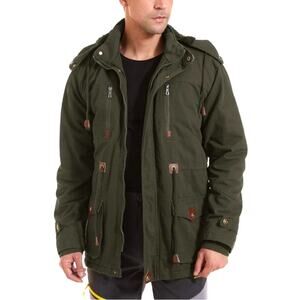 CRYSULLY Military Jacket Field Fleece Cargo Coat Green Removable Hood Sz L Men's