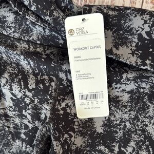 Brand new Cry Yoga Workout Capris leggings in Black and grey stylish patterned with side pockets. Comfortable fit. Perfect for yoga or casual wear in perfect new condition. NWT