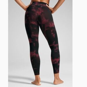 Stylish black and red tie-dye leggings. Perfect for workouts or casual wear.