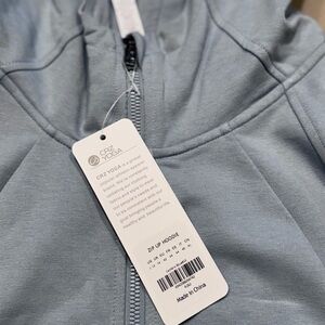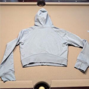 Stylish light blue hooded jacket. Features full zip closure. Perfect for casual wear.