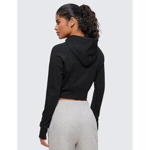 CRZ YOGA Women's Fleece Lined Zip Up Cropped Hoodie - Long Sleeve with Thumbhole